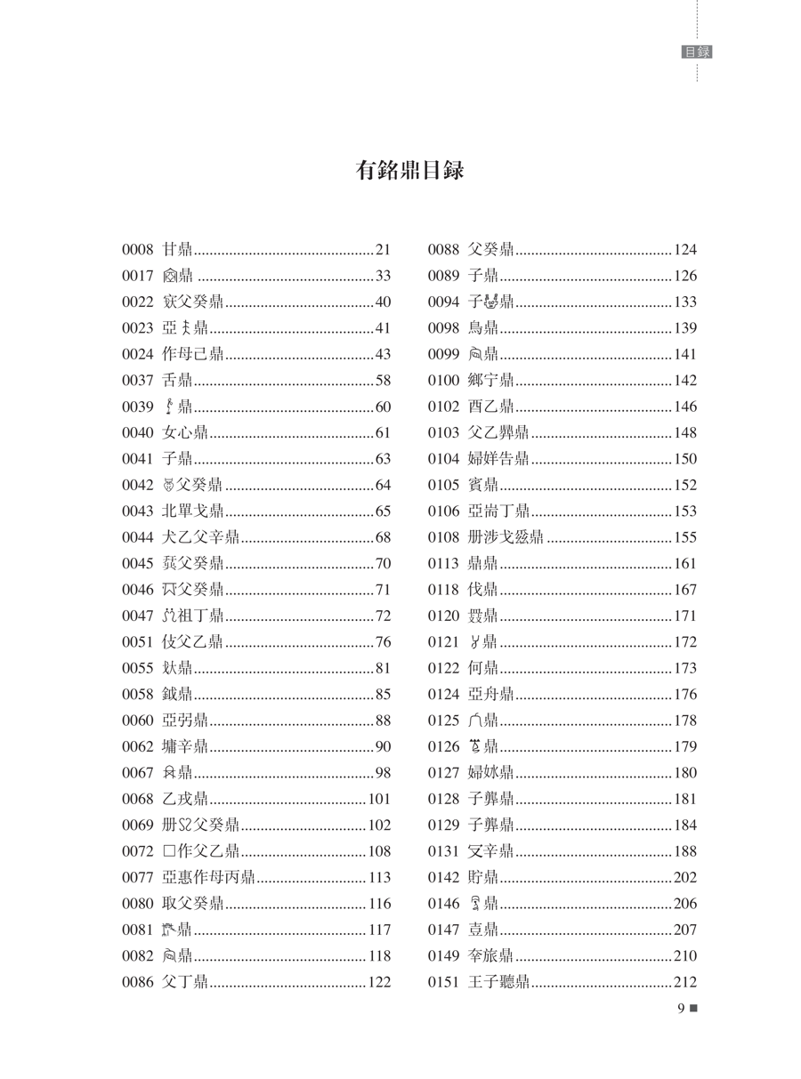 第1册 食器 有铭鼎目次