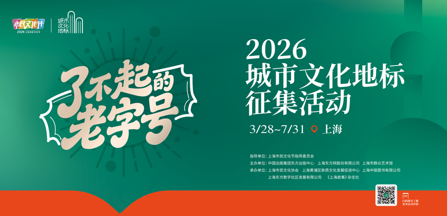 其中,2026城市文化地标“了不得的老字号”搜集由东方出书中心、上海市群众艺术馆、上海东方网股份有限公司合资主办,将搜集关联上海老字号的原创故事、图文、音视频与创意作品,以全民共创挖掘城市回来,助力老字号成为上海城市文化新地标。