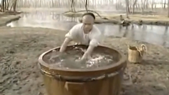 当然门的练法是在注满水的水缸边沿上快速行走,然后冉冉把缸里的水放掉。
