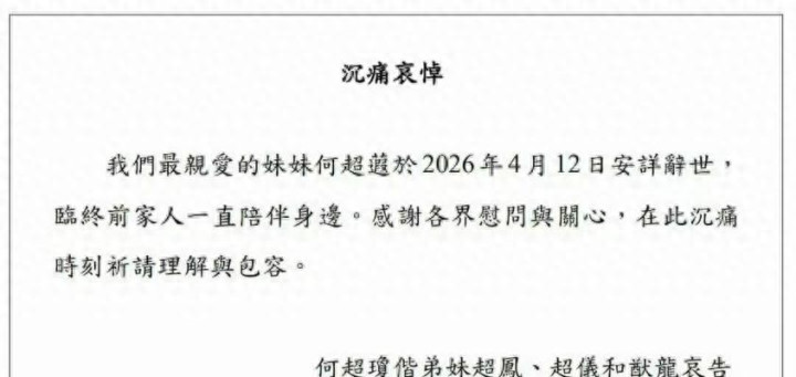 何超蕸的离世,最让东说念主唏嘘的少量,莫过于她那“孤苦”的一世。
