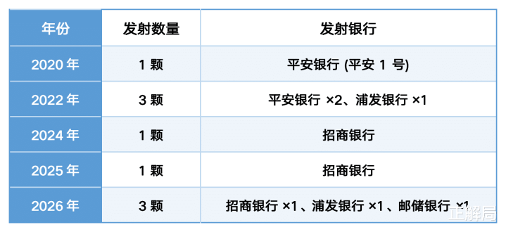 招商银行在24年、25年、26年各辐射了一颗卫星,筹算领有3颗卫星。