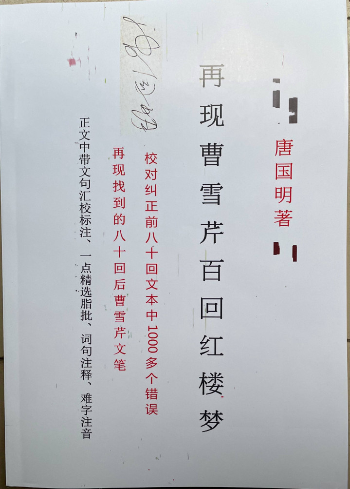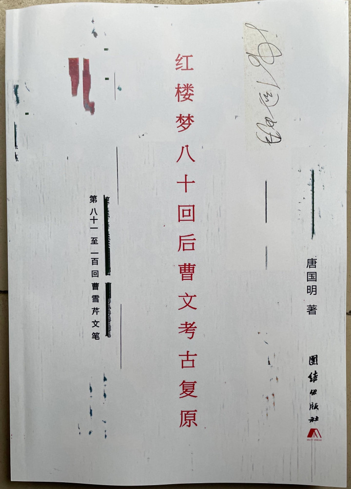 唐国明2016年出书从程高本《红楼梦》后40回,找到《红楼梦》80回后曹雪芹文笔的书。