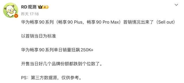 华为畅享90系列(畅享90 Plus,畅享90 Pro Max)首销情况出来了(Sell out)