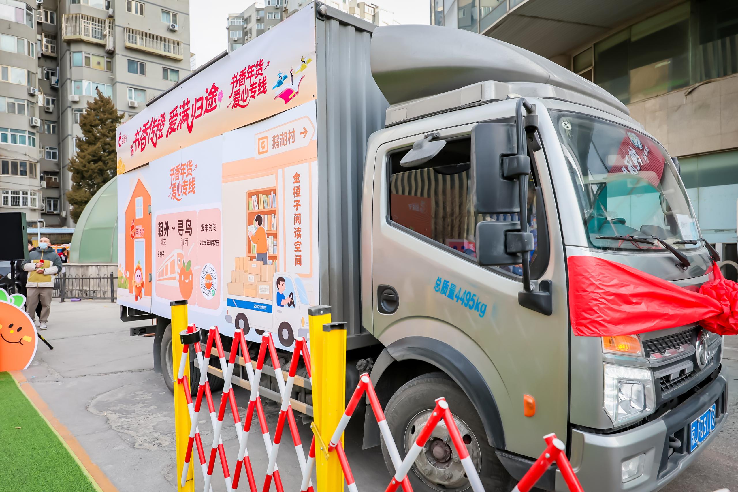 1月7日上昼,朝外大街上的金橙子众享驿站前,一辆印有“书香年货·爱满归程”字样的中通快递货车起原。满载的6800册典籍,是由辖区住户、企业白领共同捐赠的。它们将越过1500公里,送往江西寻乌县留车镇鹅湖村——快递员侯佛传的闾里。