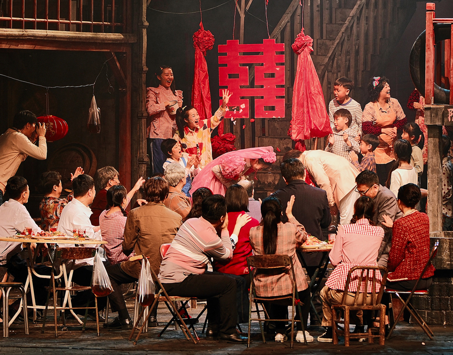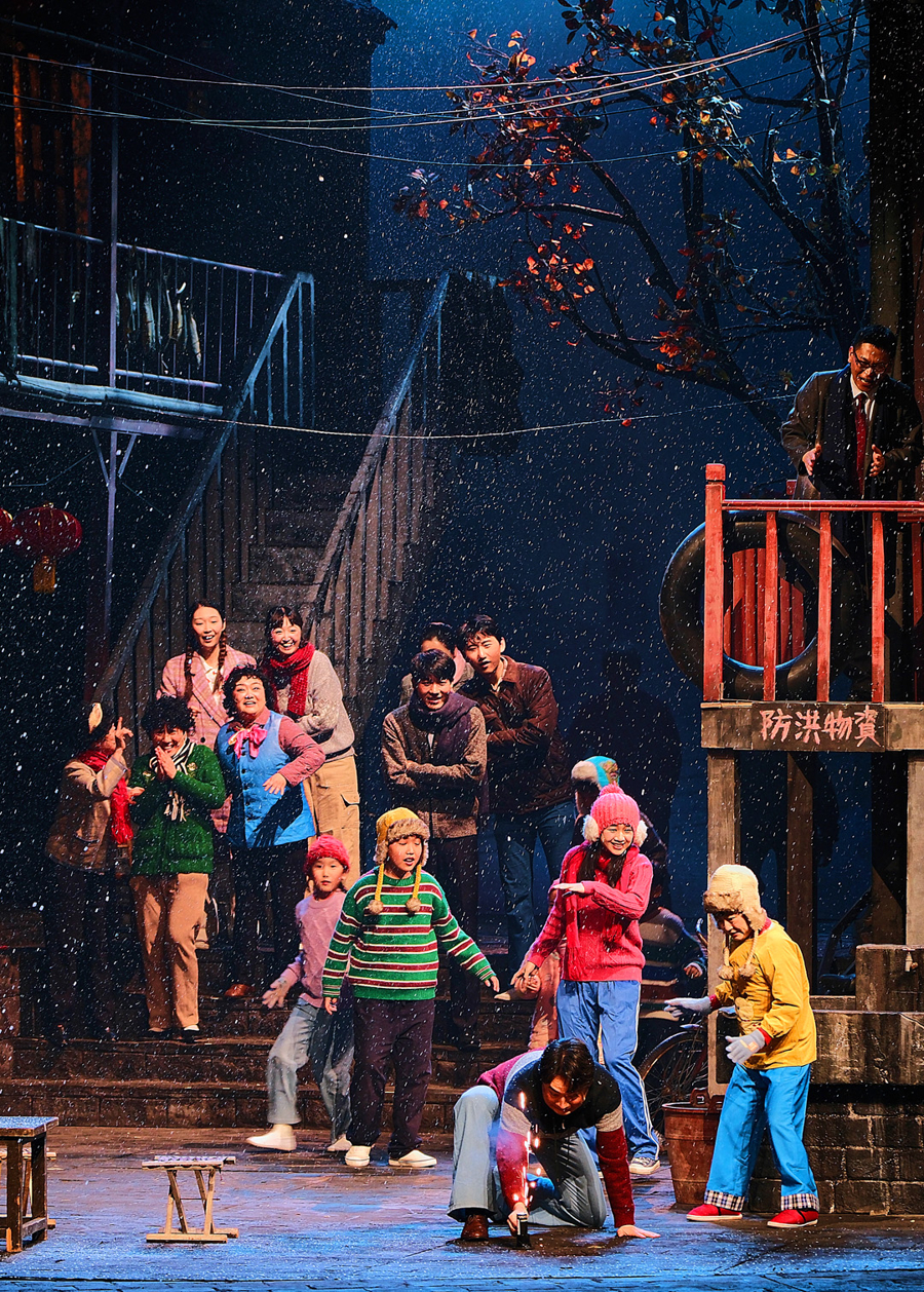 为了呈现这段“信得过得像切身资格”的院落生存,剧组在舞台筹画上精密构建,取舍360度机械转台展现院落模样,6组立体空间随情节鼓吹有序切换:从厨房到院墙,从红事到白事,从春意初醒到秋风起落,生存的肌理被竣工铺展。青岛“里院”的黎明炊烟、邻里夜话、婚丧嫁娶等场景经转台与光影无缝切换,构建出千里浸式的“生存博物馆”。说念具组以致为每位变装筹画了专属的生存轨迹,通过说念具物件更迭传达东说念主物气运与期间节拍的演进。